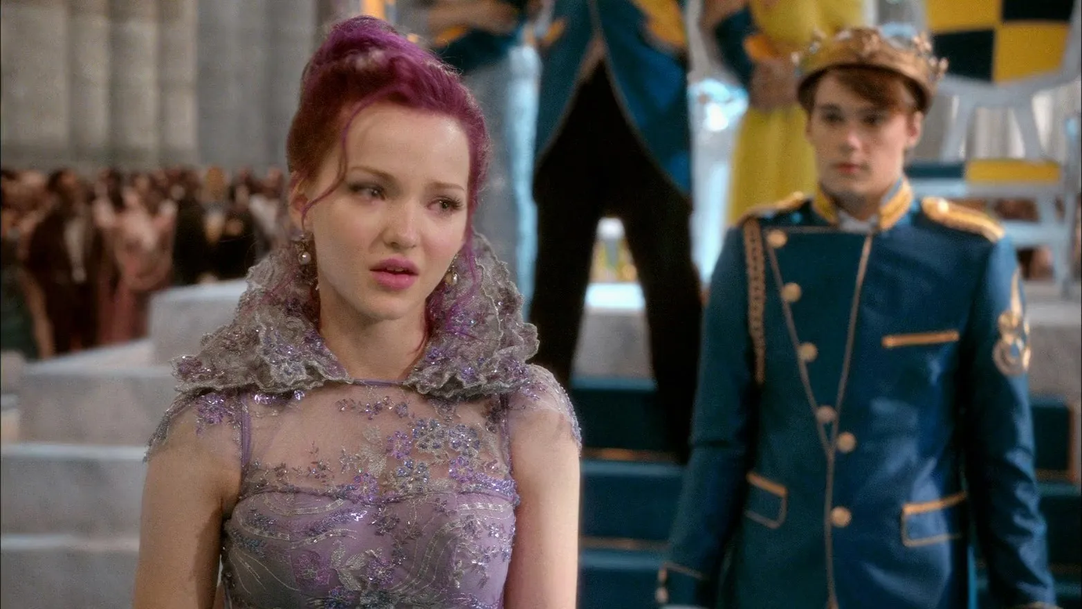 Dove Cameron as Mal, Cameron Boyce as Carlos, Booboo Stewart as Jay, Sofia Carson as Evie, Mitchell Hope as Ben, Melanie Paxson as Fairy Godmother, Brenna D'Amico as Jane, Sarah Jeffery as Audrey, Zachary Gibson as Doug, Jedidiah Goodacre as Chad Charming, Dianne Doan as Lonnie, Dan Payne as Beast, Keegan Connor Tracy as Belle, Wendy Raquel Robinson as Cruella de Vil, Maz Jobrani as Jafar, Kathy Najimy as Evil Queen, Kristin Chenoweth as Maleficent, Shaughnessy Redden as Limo Driver, Reese Alexander as Coach Jenkins, James Hibbard as Museum Guard, Wesley Salter as Photographer, Judith Maxie as Queen Leah, Ken Lawson as Royal Tailor, Stephanie Bennett as Snow White, Jonathan Holmes as Mr. Deley, Peter Schaad as Tourney Announcer, Christian Lagasse as Footman #1, Paisley as Dude the Dog, Addy Chan as Dancer and Chorus Performer, Danny De Matos as Dancer and Chorus Performer, Devin Jameson as Dancer and Chorus Performer, J.P. Dubé as Dancer and Chorus Performer, Shane Simpson as Dancer and Chorus Performer, Tyler Layton-Olson as Dancer and Chorus Performer, Tony Giroux as Dancer and Chorus Performer, Aglaë Kounkou as Dancer and Chorus Performer, Jeff Mortensen as Dancer and Chorus Performer, Kayla Wallace as Dancer and Chorus Performer, Kiara Gudgeon as Dancer and Chorus Performer, Louise Hradsky as Dancer and Chorus Performer, Megan Serena Trainer as Dancer and Chorus Performer, Mark Samuels as Dancer and Chorus Performer, Jennifer Oleksiuk as Dancer and Chorus Performer, Kelly Konno as Dancer and Chorus Performer, Tatiana Parker as Dancer and Chorus Performer, Taylor James as Dancer and Chorus Performer, Michael Riccio as Dancer and Chorus Performer, Navid Charkhi as Dancer and Chorus Performer, Dwayne Gulston as Dancer and Chorus Performer, Marlyse Joe as Dancer and Chorus Performer, Jesse Devlin as Dancer and Chorus Performer, Morgan Tanner as Dancer and Chorus Performer, Brittany Gumundson as Dancer and Chorus Performer, Michelle Dawley as Dancer and Chorus Performer, Diedre Barnes as Dancer and Chorus Performer, Winnie Chang as Dancer and Chorus Performer, Desirée Manning as Dancer and Chorus Performer, Kyal Legend as Dancer and Chorus Performer, Audessa Parafina as Dancer and Chorus Performer, Ralph Escamillan as Dancer and Chorus Performer, Mike Ward as Dancer and Chorus Performer, Mackenzie Green as Dancer and Chorus Performer, Benjamin Ritter as Dancer and Chorus Performer, Castle Rock as Dancer and Chorus Performer, Ben Stillwell as Happy Student (uncredited)