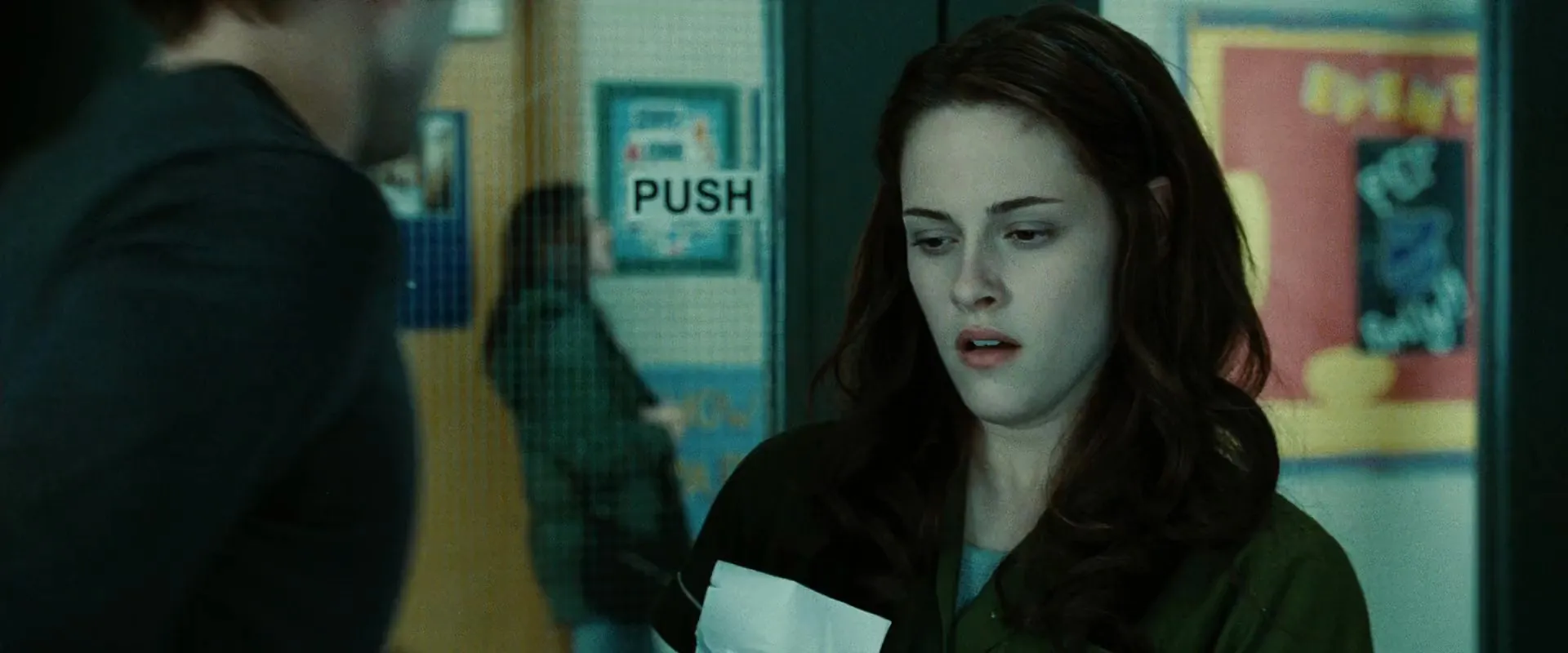 Kristen Stewart as Bella Swan, Robert Pattinson as Edward Cullen, Billy Burke as Charlie Swan, Peter Facinelli as Dr. Carlisle Cullen, Elizabeth Reaser as Esme Cullen, Cam Gigandet as James, Ashley Greene as Alice Cullen, Anna Kendrick as Jessica, Nikki Reed as Rosalie, Taylor Lautner as Jacob Black, Kellan Lutz as Emmet Cullen, Jackson Rathbone as Jasper, Michael Welch as Mike Newton, Gil Birmingham as Billy Black, Justin Chon as Eric, Christian Serratos as Angela, José Zúñiga as Mr. Molina, Rachelle Lefevre as Victoria, Edi Gathegi as Laurent, Sarah Clarke as Renée, Matt Bushell as Phil, Gregory Tyree Boyce as Tyler, Trish Egan as High School Administrator, Ayanna Berkshire as Cora, Ned Bellamy as Waylon Forge, Bryce Flint-Sommerville as Mine Security Guard, Solomon Trimble as Jacob's Friend, Alexander Mendeluk as Frat Boy, Hunter Jackson as Frat Boy, Gavin Bristol as Frat Boy, Sean McGrath as Frat Boy, Katie Powers as Waitress, Catherine Grimme as Young Bella, William Joseph Elk III as Native Wolf Pack Member #2 (uncredited), Victoria Geil as 1920's Vampire Victim (uncredited), Stephenie Meyer as Diner Customer (uncredited), Rick Mora as Native Werewolf Tribe #1 - Flashback Sequence (uncredited), Rana Morrison as Patron in Restaurant (uncredited), Edward Stiner as Man in Cafe (uncredited), Robert Zorn as Logger (uncredited), Humberto Amor as Jacob in Spanish (uncredited), Kristopher Hyatt as Embry Call (uncredited), Sherry Nelson as Restaurant Patron (uncredited), Tyler Nordby as Biology Class Student (uncredited), Trip Ross as Coffee Shop Guy (uncredited), Josh Turner as Townsperson (uncredited), Maggie-Jo Turner as Volleyball Player (uncredited)