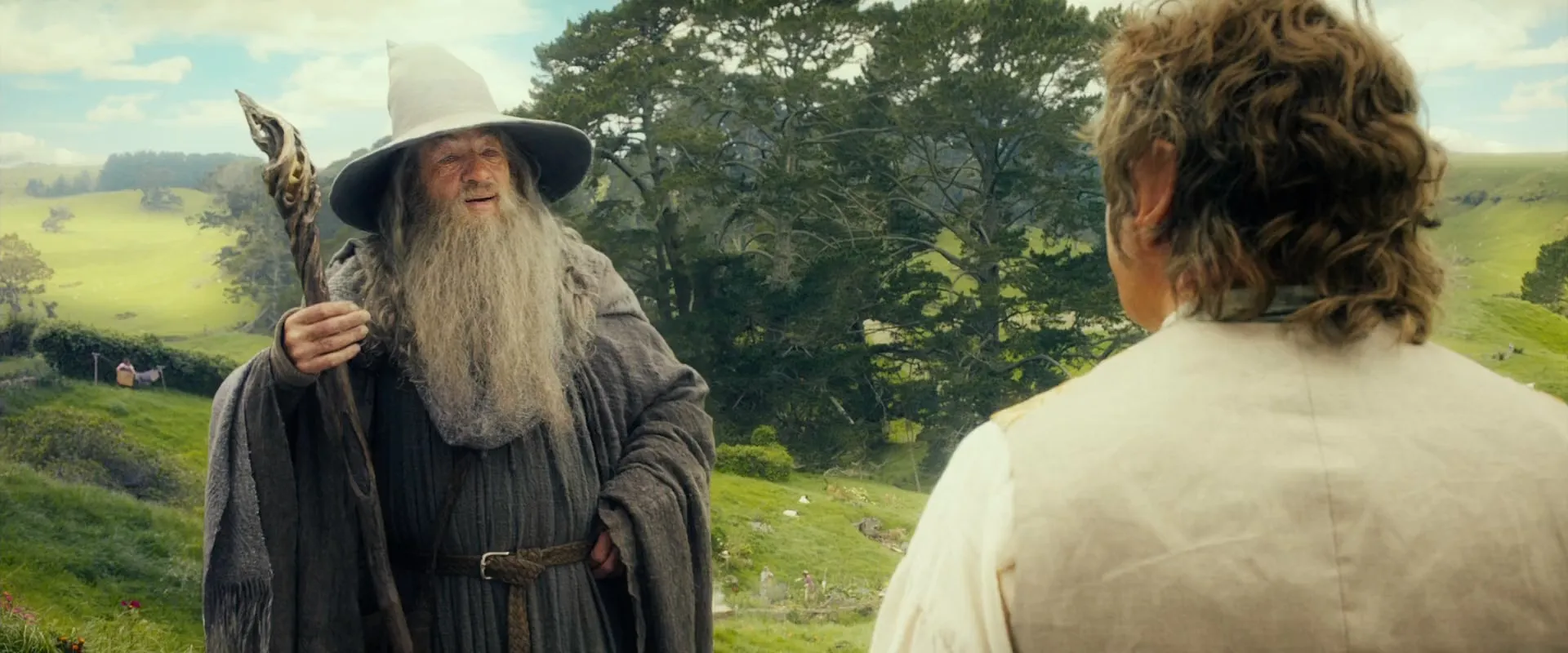 Ian McKellen as Gandalf, Martin Freeman as Bilbo Baggins, Richard Armitage as Thorin, Graham McTavish as Dwalin, Aidan Turner as Kili, Ken Stott as Balin, Dean O'Gorman as Fili, James Nesbitt as Bofur, Mark Hadlow as Dori / Bert Troll, Stephen Hunter as Bombur, William Kircher as Bifur / Tom Troll, John Callen as Oin, Peter Hambleton as Gloin / William Troll, Jed Brophy as Nori, Adam Brown as Ori, Ian Holm as Old Bilbo, Elijah Wood as Frodo, Hugo Weaving as Elrond, Cate Blanchett as Galadriel, Christopher Lee as Saruman, Andy Serkis as Gollum, Sylvester McCoy as Radagast, Barry Humphries as Great Goblin, Jeffrey Thomas as Thror, Michael Mizrahi as Thrain, Lee Pace as Thranduil, Manu Bennett as Azog, Conan Stevens as Bolg, John Rawls as Yazneg, Stephen Ure as Fimbul / Grinnah, Timothy Bartlett as Master Worrywort, Bret McKenzie as Lindir, Kiran Shah as Goblin Scribe, Benedict Cumberbatch as Necromancer, Glenn Boswell as Dwarf Miner, Thomas Robins as Young Thrain, Luke Evans as Girion (Extended Edition), Dan Hennah as Old Took (Extended Edition), Stephen Gledhill as Old Gammidge (Extended Edition), Tim Gordon as Old Hob (Extended Edition), Sonia Forbes Adam as Belladonna Took (Extended Edition), Oscar Strik as Little Bilbo (Extended Edition), Erin Banks as Lobelia Sackville Baggins (Extended Edition), Brian Hotter as Otho Sackville Baggins (Extended Edition), Eric Vespe as Fredegar Chubb (Extended Edition), Mervyn Smith as Tosser Grubb (Extended Edition), Ruby Acevedo as Cute Young Hobbit, Katie Jackson as Cute Young Hobbit, Isaac Miller as Cute Young Hobbit, Ella Olssen as Cute Young Hobbit, Louis Ashbourne Serkis as Cute Young Hobbit, Sonny Ashbourne Serkis as Cute Young Hobbit, Ruby Ashbourne Serkis as Cute Young Hobbit, Terry Notary as Great Goblin / Yazneg (uncredited), Peter Jackson as Running Dwarf in Erebor (uncredited)